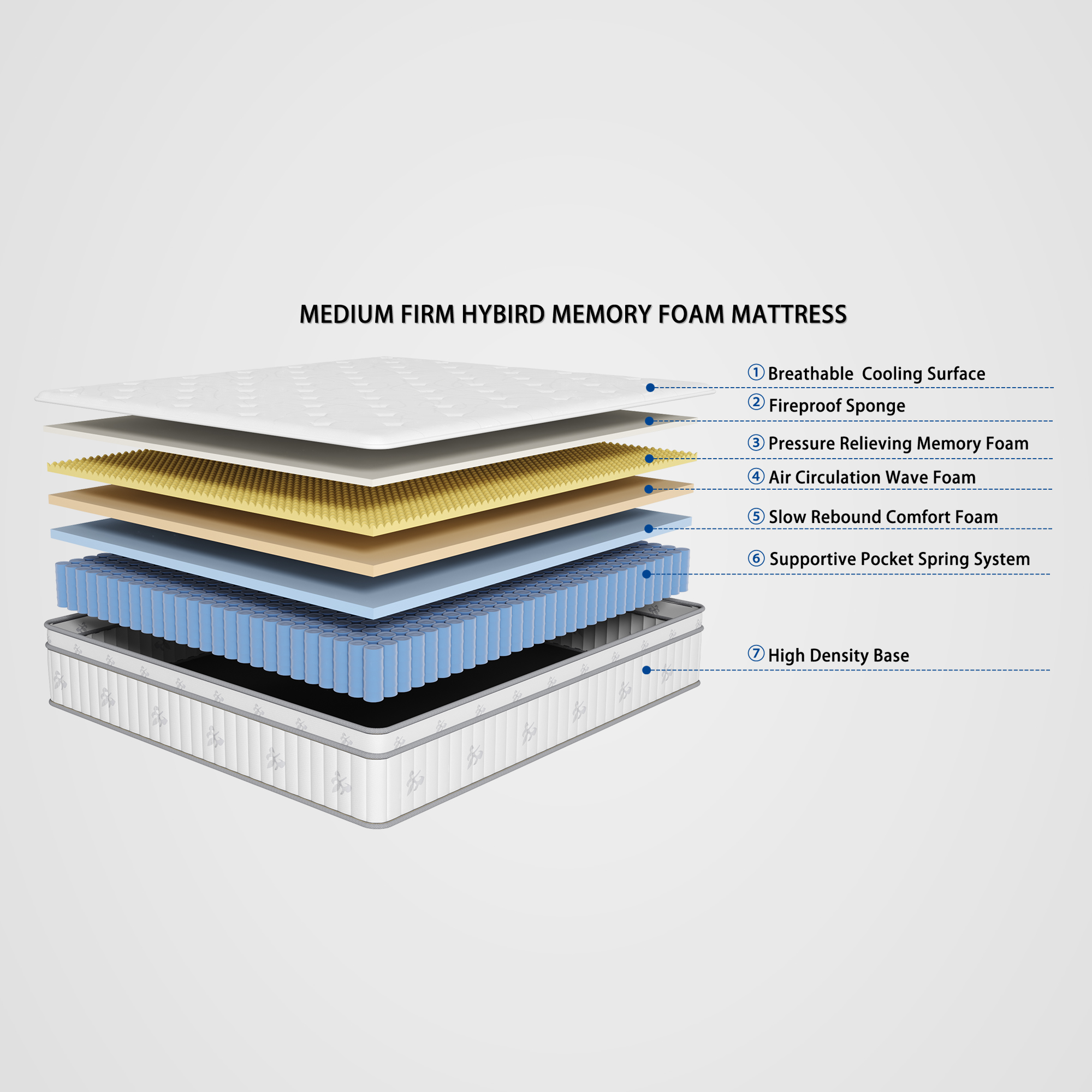 - Multilayer Hybird Memory Foam Mattress : Made of breathable white knitted fabric,pressure relieving foam and body contouring pocket springs,protective base,providing better support for your body,breathable and comfortable for sleeping night.Twin mattress supports a maximum weight of 250 lbs, while all other sizes can support up to 500 lbs.
