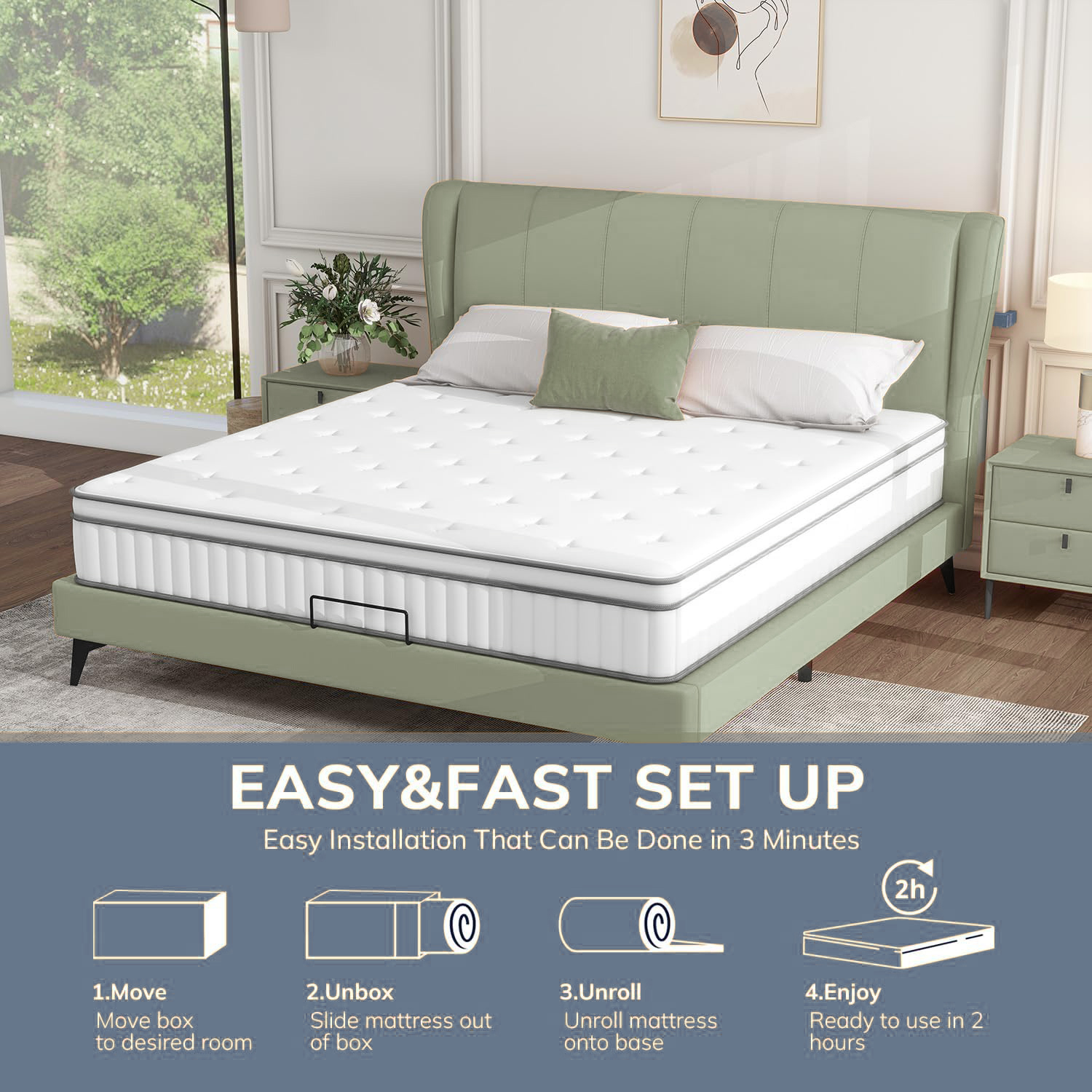 - Mattress in a box. Vacuum roll packed the mattress in a box .4 steps for easy set up. please allow this mattress 72h for fully expanding its full lofty shape in a well-ventilated room.
